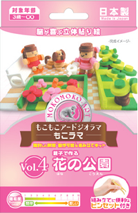 もこもこアートはスポンジ製のシートです。肉厚なので、平面に貼って絵画のような貼り絵や、積み重ねて立体を作ることもできます。箱の中にシートを組み合わせて貼っていくことで箱庭やミニチュアドールハウスのような、小さな部屋や装飾品を作ることができます。手でちぎったり、ハサミやカッターで細かくすることなどで、紙の貼り絵にはできない、斬新な立体作品が作れます。