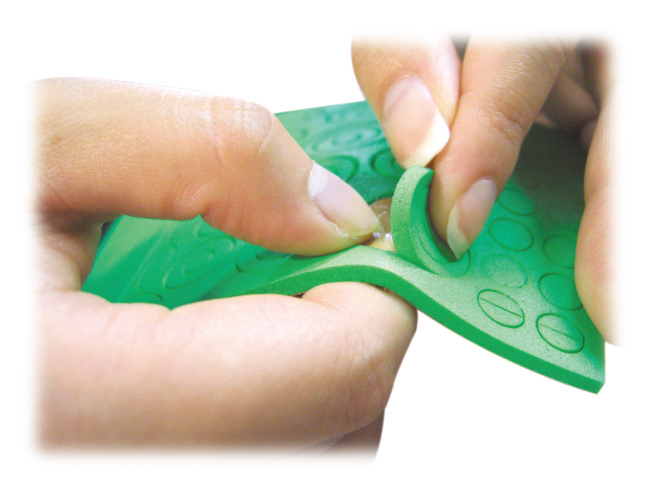 スポンジ製のシートにいろんな形で 切れ目が入っています。