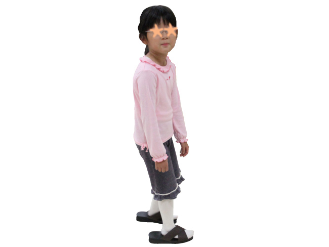 右足のサンダルの中におもりを封入していますので 歩行の不自由さを体感できます。