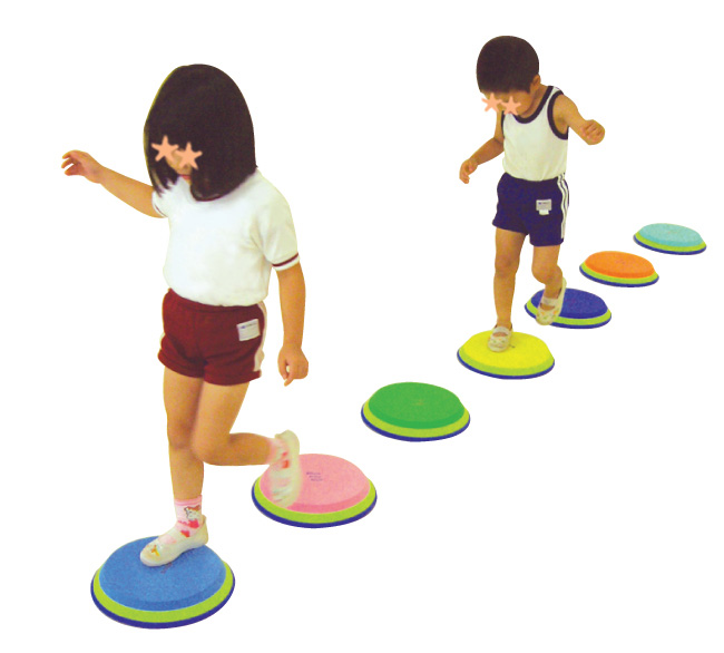 音プレートを並べて上を飛び石のように渡って音を鳴らします。(空気圧)