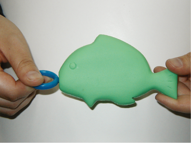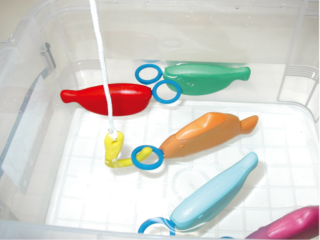 本物の魚のように水面近くに浮くように出来ています。 魚は軟質樹脂で出来ているためやわらかく安全です。 水中だけでなく、床などでもご使用頂けます。 魚のリングの向きを変えることで、難易度を変えることができます。